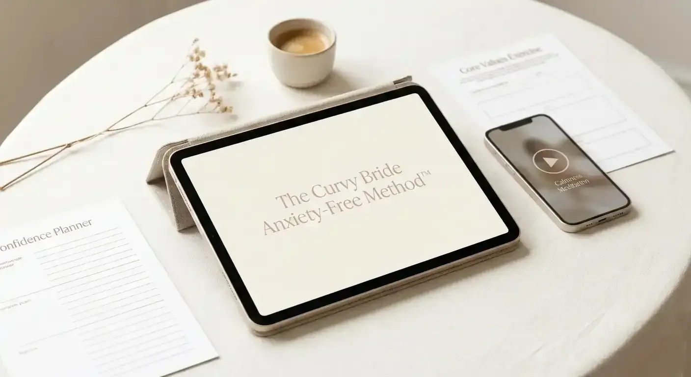 The Curvy Bride Anxiety-Free Method™ the first Italian-designed system created to emotionally and strategically prepare curvy brides before the fear hits — so you can walk into any boutique feeling calm, confident and in control.